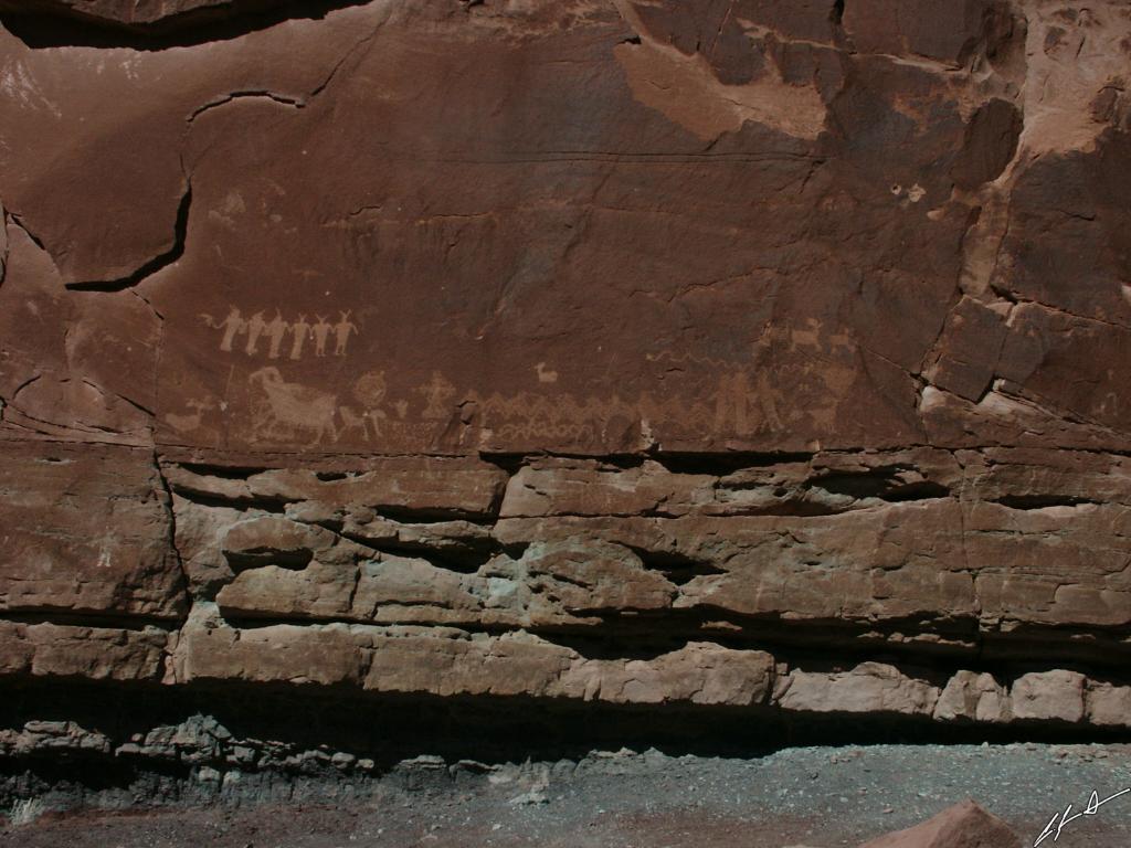 the Moab area. I don't know the story these tell, but it looks to be an interesting one. Note the men with horns and what appears to be pistols in their hands. |